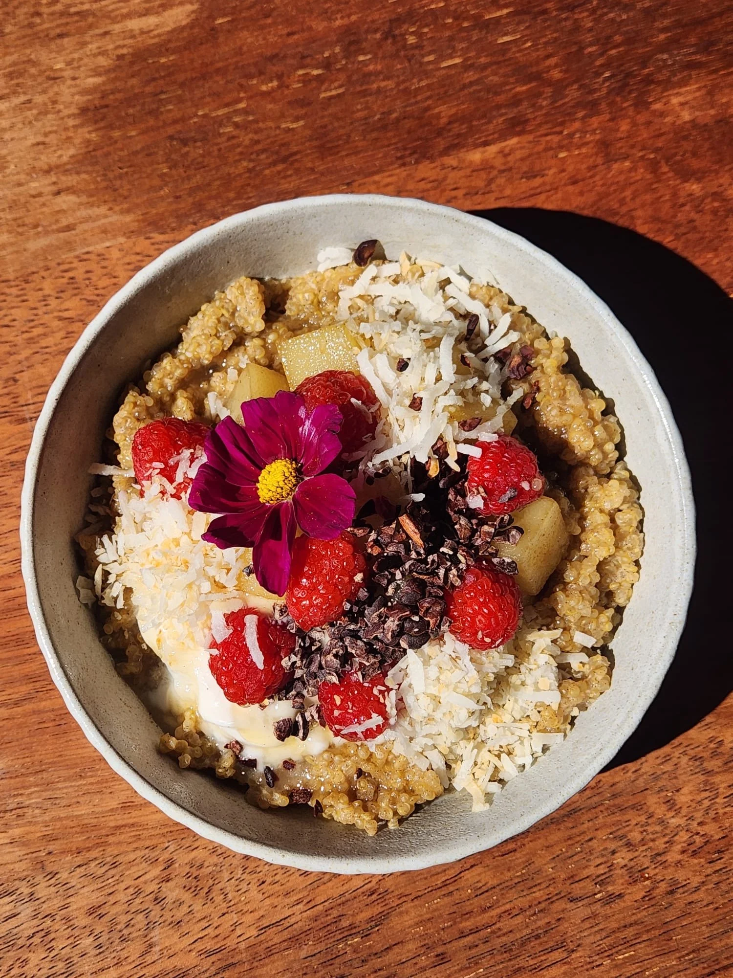 Organic produce offers significant benefits, particularly for gut health and reducing pesticide exposure. Romany looks forward to each shift, incorporating organic, sustainable, and raw ingredients into creative new recipes. A key aspect of her work involves transforming imperfect "odd bunch" produce - damaged or unsellable retail stock into high-quality dishes, giving it a second life. Sustainability is also at the heart of the café’s operations, with minimal food waste. Coffee grounds and eggshells are repurposed for compost, while unusable food scraps benefit customers’ and staff’s pets and livestock.